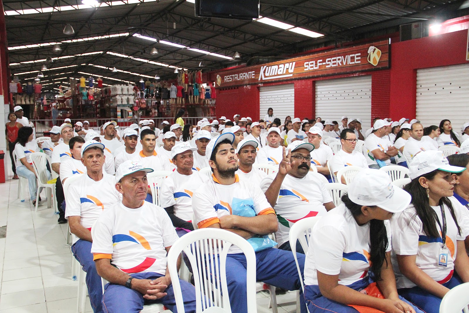 mais de 300 colaboradores do centro de compras para comemorar os excelentes
