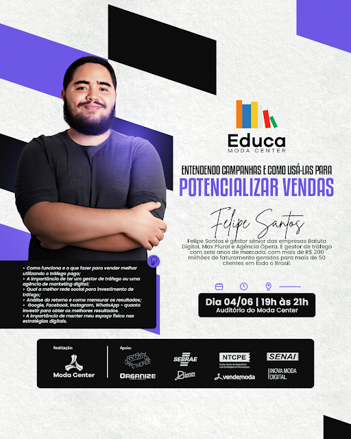 Próxima terça-feira (4), das 19h às 21h, no Auditório do Moda Center, será realizada a palestra “Entendendo campanhas e como usá-las para potencializar vendas”, que faz parte das ações do Educa Moda Center.